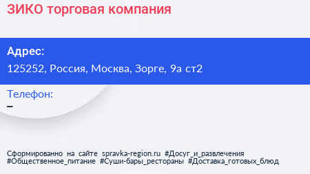 ЗИКО, торговая компания по адресу 125252, Россия, Москва, Зорге, 9а ст2 в дальнейшем Организация, размещена в следующих категориях: