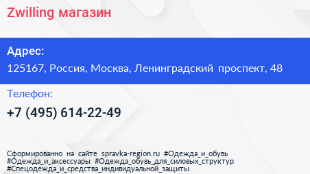 Zwilling, магазин по адресу 125167, Россия, Москва, Ленинградский проспект, 48 в дальнейшем Организация, размещена в следующих категориях: