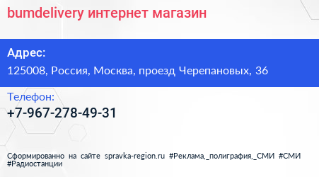 bumdelivery, интернет-магазин по адресу 125008, Россия, Москва, проезд Черепановых, 36 в дальнейшем Организация, размещена в следующих категориях: