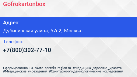 Gofrokartonbox по адресу Дубининская улица, 57с2, Москва в дальнейшем Организация, размещена в следующих категориях:
