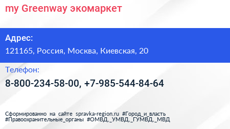 my Greenway, экомаркет по адресу 121165, Россия, Москва, Киевская, 20 в дальнейшем Организация, размещена в следующих категориях: