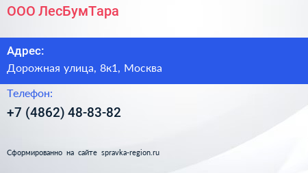 ООО «ЛесБумТара» по адресу Дорожная улица, 8к1, Москва в дальнейшем Организация, размещена в следующих категориях: