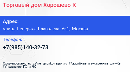 Торговый дом Хорошево К по адресу улица Генерала Глаголева, 6к1, Москва в дальнейшем Организация, размещена в следующих категориях: