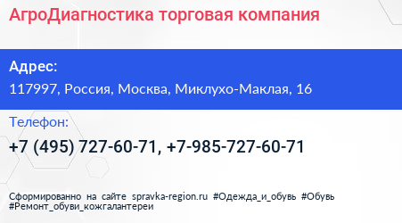 АгроДиагностика, торговая компания по адресу 117997, Россия, Москва, Миклухо-Маклая, 16 в дальнейшем Организация, размещена в следующих категориях: