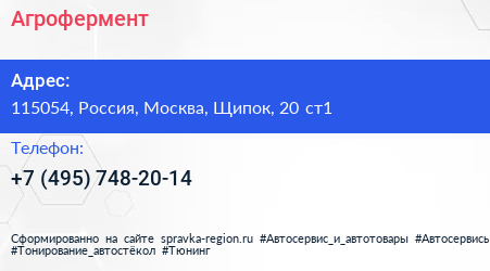 Агрофермент по адресу 115054, Россия, Москва, Щипок, 20 ст1 в дальнейшем Организация, размещена в следующих категориях: