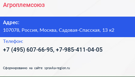 Агроплемсоюз по адресу 107078, Россия, Москва, Садовая-Спасская, 13 к2 в дальнейшем Организация, размещена в следующих категориях: