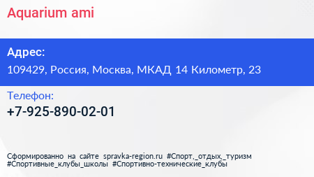 Aquarium-ami по адресу 109429, Россия, Москва, МКАД 14 Километр, 23 в дальнейшем Организация, размещена в следующих категориях: