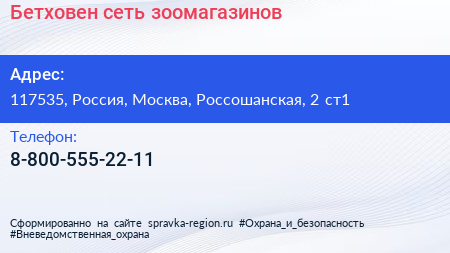 Бетховен, сеть зоомагазинов по адресу 117535, Россия, Москва, Россошанская, 2 ст1 в дальнейшем Организация, размещена в следующих категориях:
