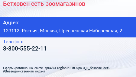 Бетховен, сеть зоомагазинов по адресу 123112, Россия, Москва, Пресненская Набережная, 2 в дальнейшем Организация, размещена в следующих категориях: