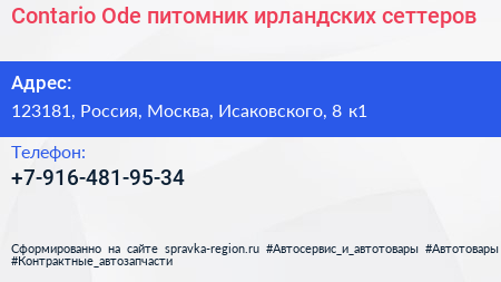 Contario Ode, питомник ирландских сеттеров по адресу 123181, Россия, Москва, Исаковского, 8 к1 в дальнейшем Организация, размещена в следующих категориях: