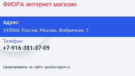 ФИОРА, интернет-магазин по адресу 143960, Россия, Москва, Фабричная, 7 в дальнейшем Организация, размещена в следующих категориях: