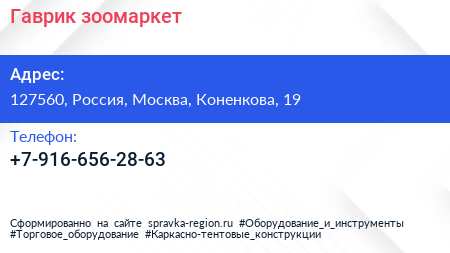 Гаврик, зоомаркет по адресу 127560, Россия, Москва, Коненкова, 19 в дальнейшем Организация, размещена в следующих категориях: