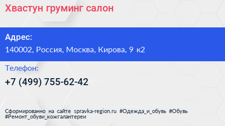 Хвастун, груминг-салон по адресу 140002, Россия, Москва, Кирова, 9 к2 в дальнейшем Организация, размещена в следующих категориях: