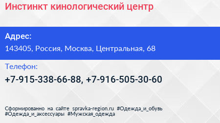 Инстинкт, кинологический центр по адресу 143405, Россия, Москва, Центральная, 68 в дальнейшем Организация, размещена в следующих категориях: