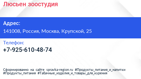 Люсьен, зоостудия по адресу 141008, Россия, Москва, Крупской, 25 в дальнейшем Организация, размещена в следующих категориях: