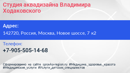 Студия аквадизайна Владимира Ходаковского по адресу 142720, Россия, Москва, Новое шоссе, 7 к2 в дальнейшем Организация, размещена в следующих категориях:
