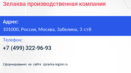 Зелаква, производственная компания по адресу 101000, Россия, Москва, Забелина, 3 ст8 в дальнейшем Организация, размещена в следующих категориях: