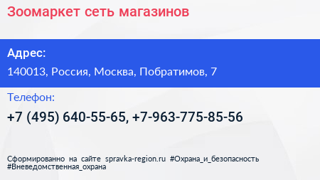 Зоомаркет, сеть магазинов по адресу 140013, Россия, Москва, Побратимов, 7 в дальнейшем Организация, размещена в следующих категориях: