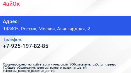 4айОк! по адресу 143405, Россия, Москва, Авангардная, 2 в дальнейшем Организация, размещена в следующих категориях: