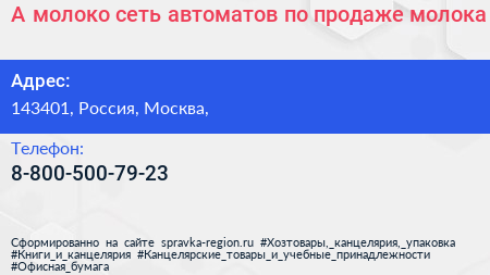 А-молоко, сеть автоматов по продаже молока по адресу 143401, Россия, Москва, в дальнейшем Организация, размещена в следующих категориях: