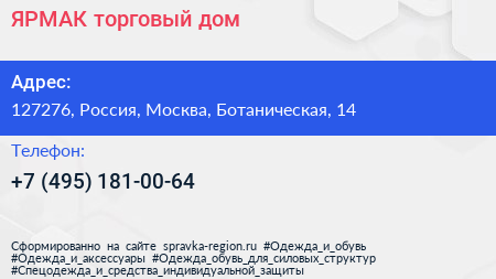 ЯРМАК, торговый дом по адресу 127276, Россия, Москва, Ботаническая, 14 в дальнейшем Организация, размещена в следующих категориях: