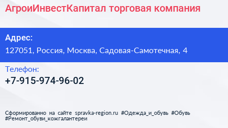 АгроиИнвестКапитал, торговая компания по адресу 127051, Россия, Москва, Садовая-Самотечная, 4 в дальнейшем Организация, размещена в следующих категориях: