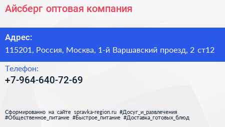 Айсберг, оптовая компания по адресу 115201, Россия, Москва, 1-й Варшавский проезд, 2 ст12 в дальнейшем Организация, размещена в следующих категориях: