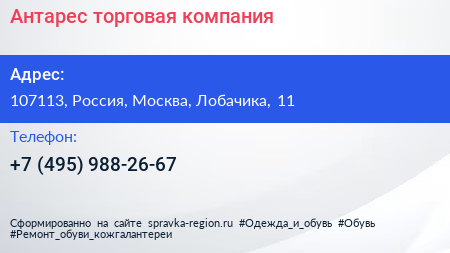 Антарес, торговая компания по адресу 107113, Россия, Москва, Лобачика, 11 в дальнейшем Организация, размещена в следующих категориях:
