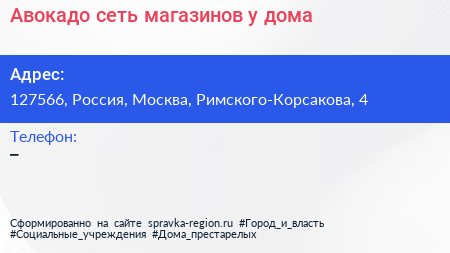Авокадо, сеть магазинов у дома по адресу 127566, Россия, Москва, Римского-Корсакова, 4 в дальнейшем Организация, размещена в следующих категориях:
