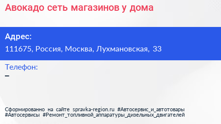 Авокадо, сеть магазинов у дома по адресу 111675, Россия, Москва, Лухмановская, 33 в дальнейшем Организация, размещена в следующих категориях: