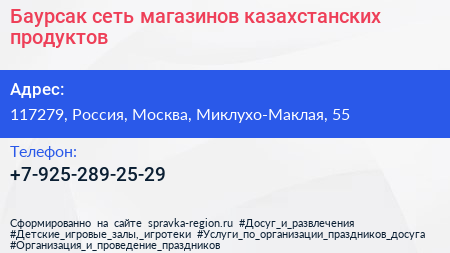 Баурсак, сеть магазинов казахстанских продуктов по адресу 117279, Россия, Москва, Миклухо-Маклая, 55 в дальнейшем Организация, размещена в следующих категориях: