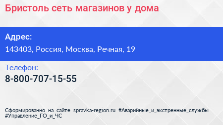 Бристоль, сеть магазинов у дома по адресу 143403, Россия, Москва, Речная, 19 в дальнейшем Организация, размещена в следующих категориях: