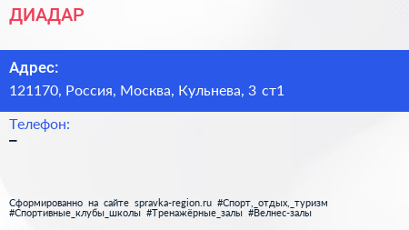 ДИАДАР по адресу 121170, Россия, Москва, Кульнева, 3 ст1 в дальнейшем Организация, размещена в следующих категориях: