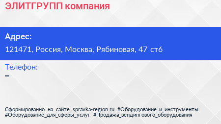 ЭЛИТГРУПП, компания по адресу 121471, Россия, Москва, Рябиновая, 47 ст6 в дальнейшем Организация, размещена в следующих категориях: