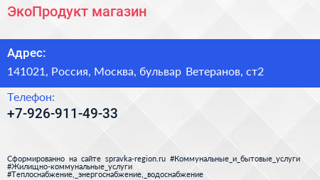 ЭкоПродукт, магазин по адресу 141021, Россия, Москва, бульвар Ветеранов, ст2 в дальнейшем Организация, размещена в следующих категориях: