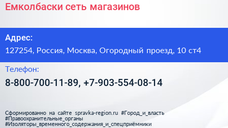Емколбаски, сеть магазинов по адресу 127254, Россия, Москва, Огородный проезд, 10 ст4 в дальнейшем Организация, размещена в следующих категориях:
