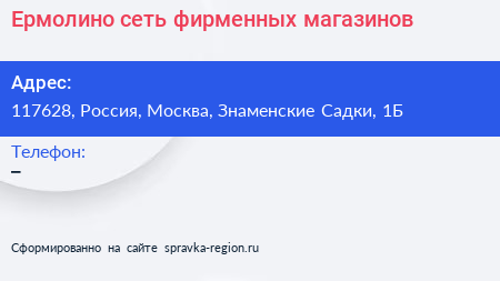 Ермолино, сеть фирменных магазинов по адресу 117628, Россия, Москва, Знаменские Садки, 1Б в дальнейшем Организация, размещена в следующих категориях: