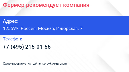 Фермер рекомендует, компания по адресу 125599, Россия, Москва, Ижорская, 7 в дальнейшем Организация, размещена в следующих категориях: