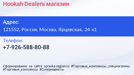 Hookah Dealers, магазин по адресу 121552, Россия, Москва, Ярцевская, 24 к1 в дальнейшем Организация, размещена в следующих категориях: