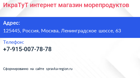 ИкраТуТ, интернет-магазин морепродуктов по адресу 125445, Россия, Москва, Ленинградское шоссе, 63 в дальнейшем Организация, размещена в следующих категориях: