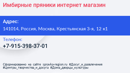 Имбирные пряники, интернет-магазин по адресу 141014, Россия, Москва, Крестьянская 3-я, 12 к1 в дальнейшем Организация, размещена в следующих категориях:
