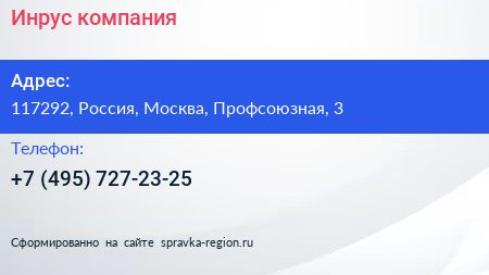 Инрус, компания по адресу 117292, Россия, Москва, Профсоюзная, 3 в дальнейшем Организация, размещена в следующих категориях:
