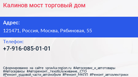 Калинов мост, торговый дом по адресу 121471, Россия, Москва, Рябиновая, 55 в дальнейшем Организация, размещена в следующих категориях:
