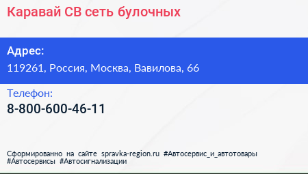 Каравай СВ, сеть булочных по адресу 119261, Россия, Москва, Вавилова, 66 в дальнейшем Организация, размещена в следующих категориях: