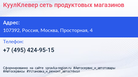 КуулКлевер, сеть продуктовых магазинов по адресу 107392, Россия, Москва, Просторная, 4 в дальнейшем Организация, размещена в следующих категориях: