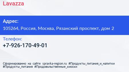 Lavazza по адресу 105264, Россия, Москва, Рязанский проспект, дом 2 в дальнейшем Организация, размещена в следующих категориях: