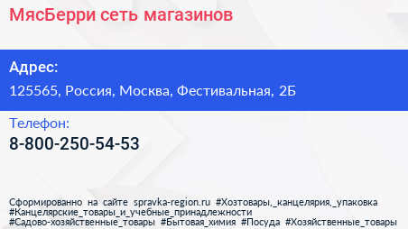 МясБерри, сеть магазинов по адресу 125565, Россия, Москва, Фестивальная, 2Б в дальнейшем Организация, размещена в следующих категориях: