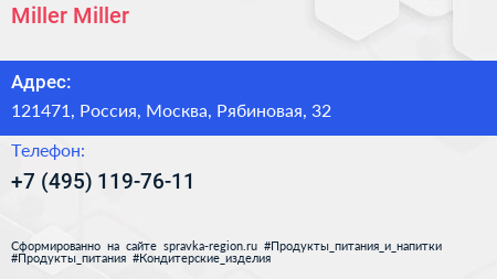 Miller & Miller по адресу 121471, Россия, Москва, Рябиновая, 32 в дальнейшем Организация, размещена в следующих категориях: