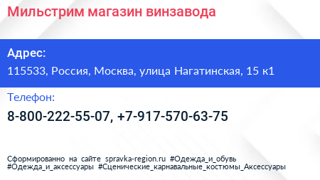 Мильстрим, магазин винзавода по адресу 115533, Россия, Москва, улица Нагатинская, 15 к1 в дальнейшем Организация, размещена в следующих категориях:
