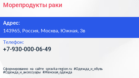 Морепродукты & раки по адресу 143965, Россия, Москва, Южная, 3в в дальнейшем Организация, размещена в следующих категориях: